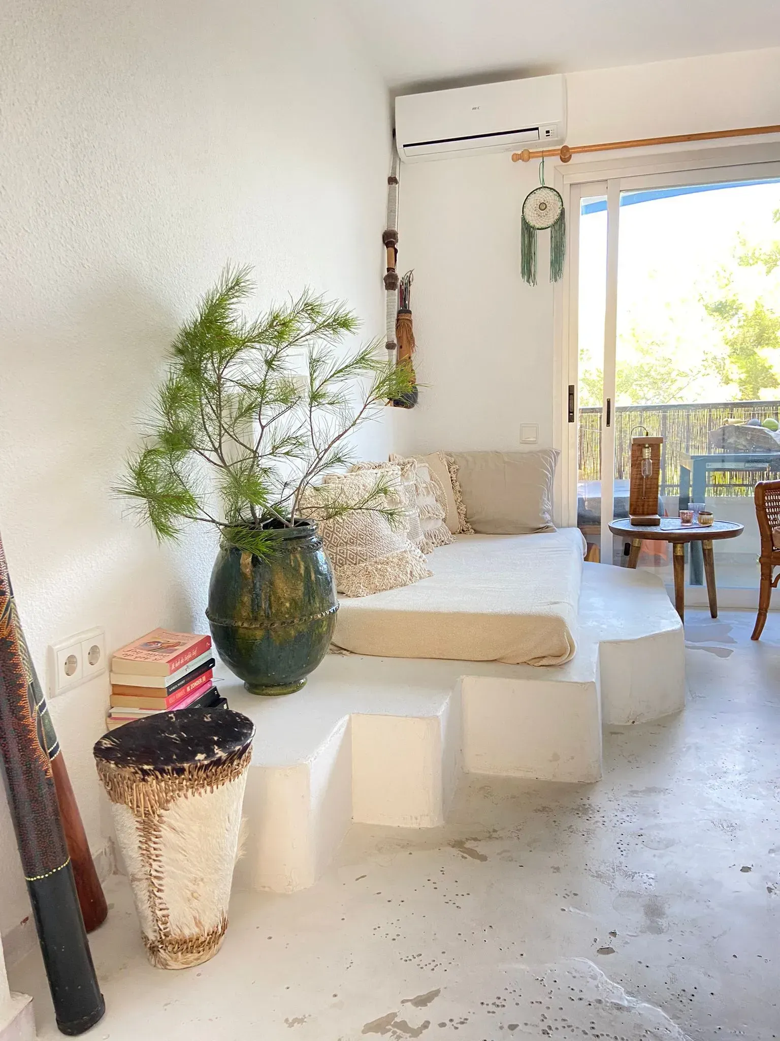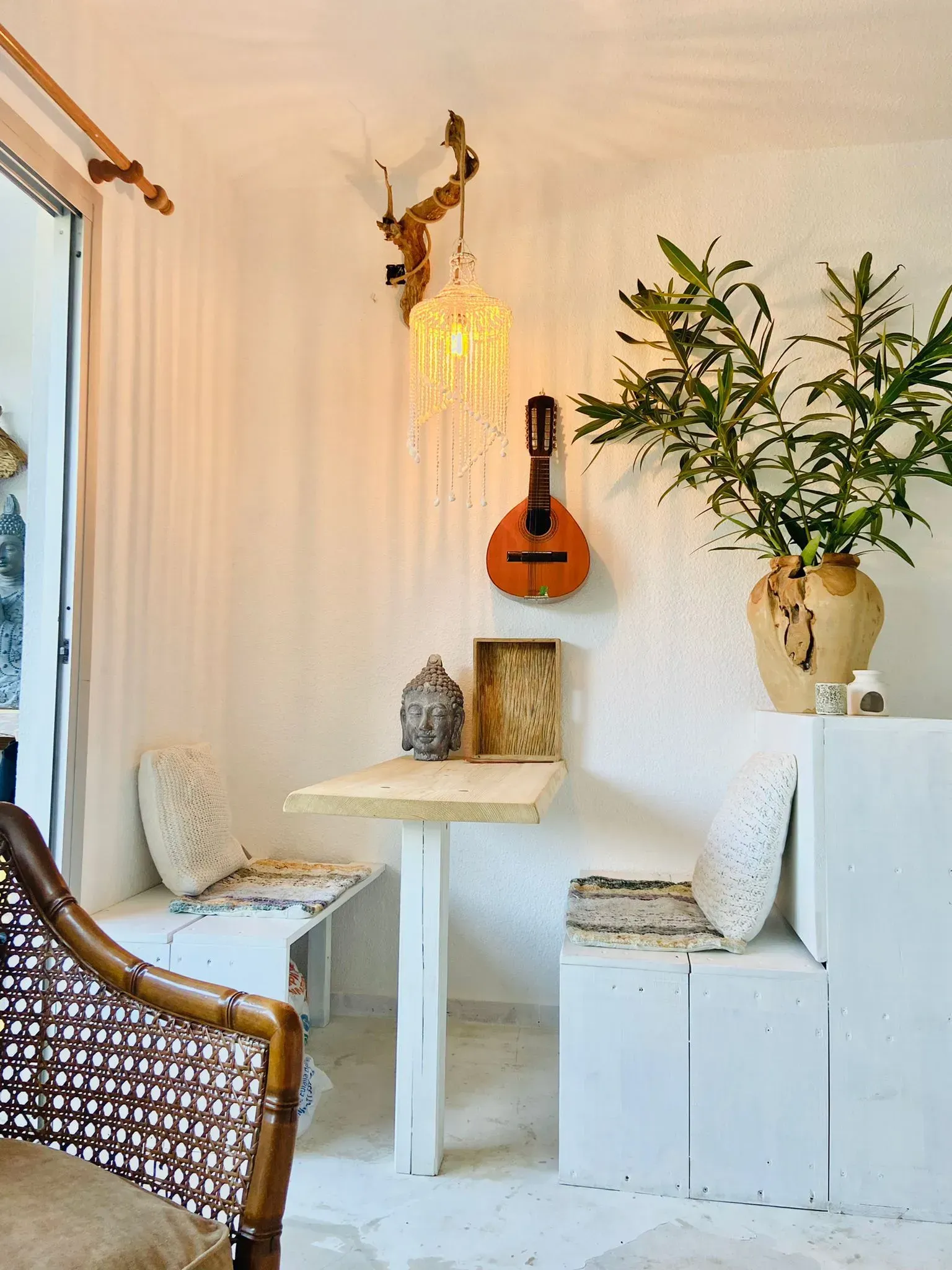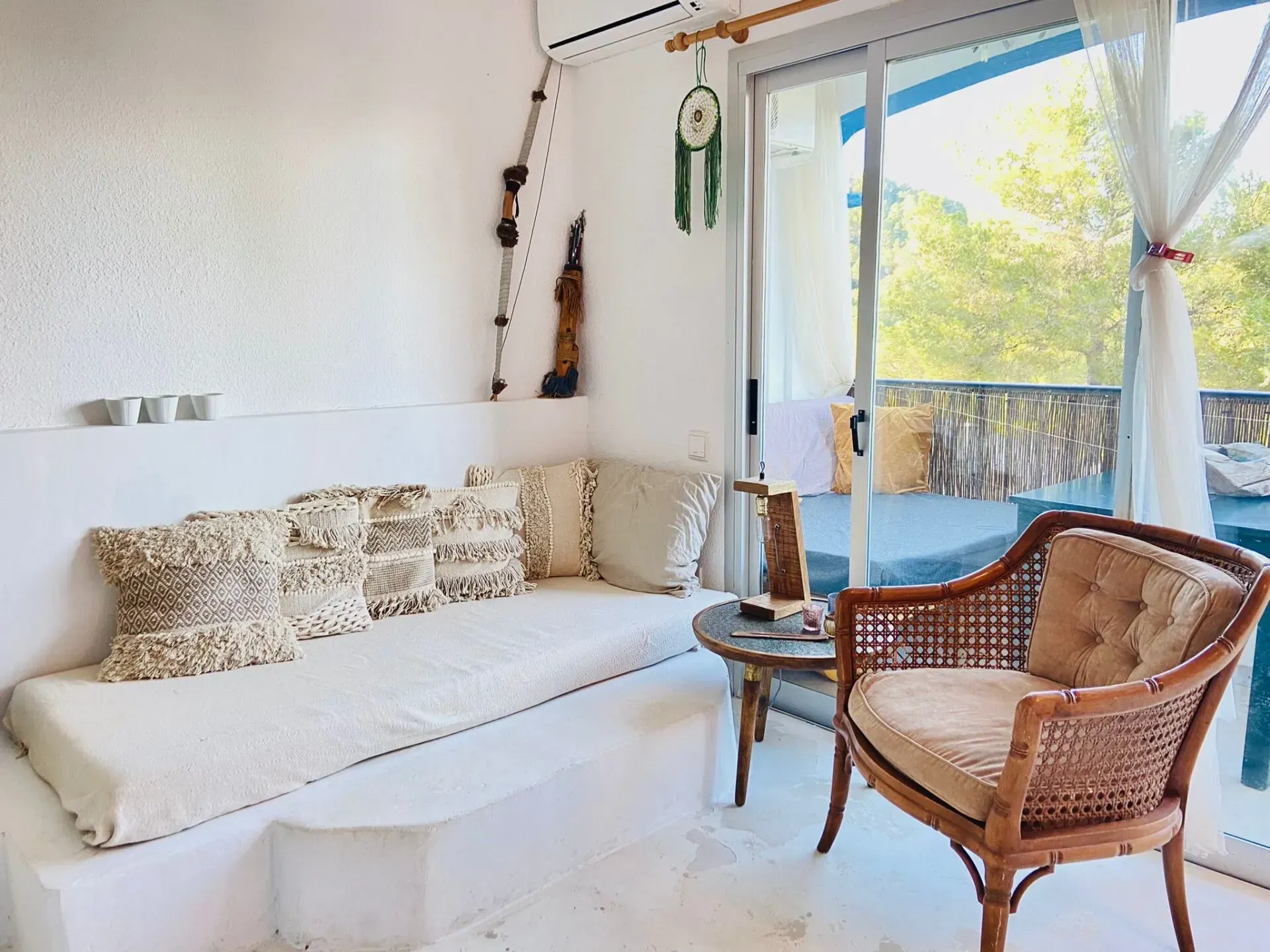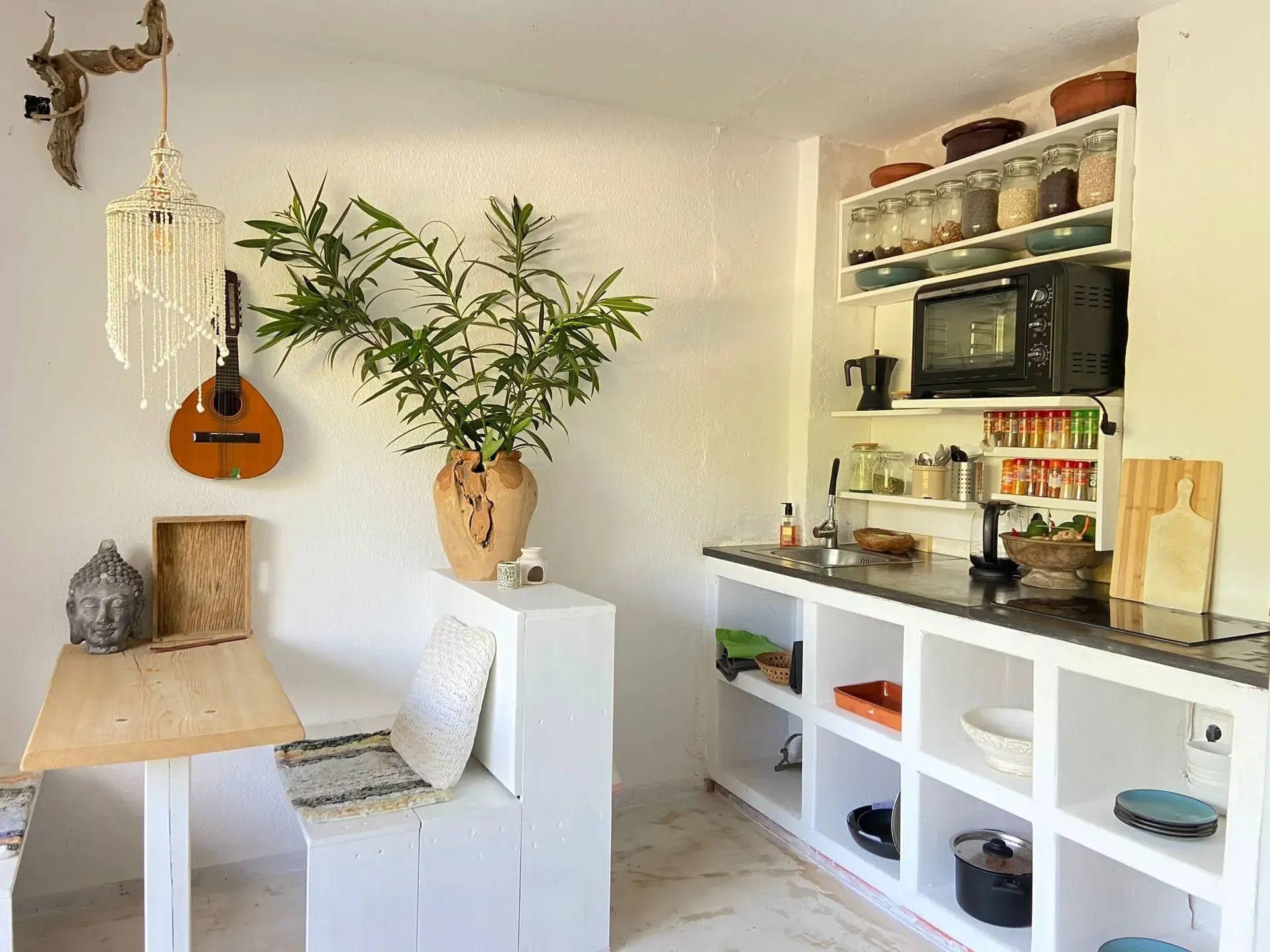 Dit sfeervolle en knusse appartementje is geschikt voor 2 personen, “gestyled” in Ibiza sfeer, heeft een ruime slaapkamer, badkamer met bad/douche en wc, en een woonkamer met keuken uitkomend op een heerlijk balkon, waarvan je zittend op de loungebank lekker kan mijmeren al turende over de woeste kust en zee.